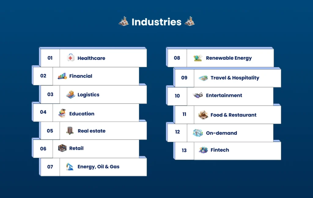 - Financial services: Another industry that has seen significant growth through our fintech apps, payment gateways, and many other software solutions.